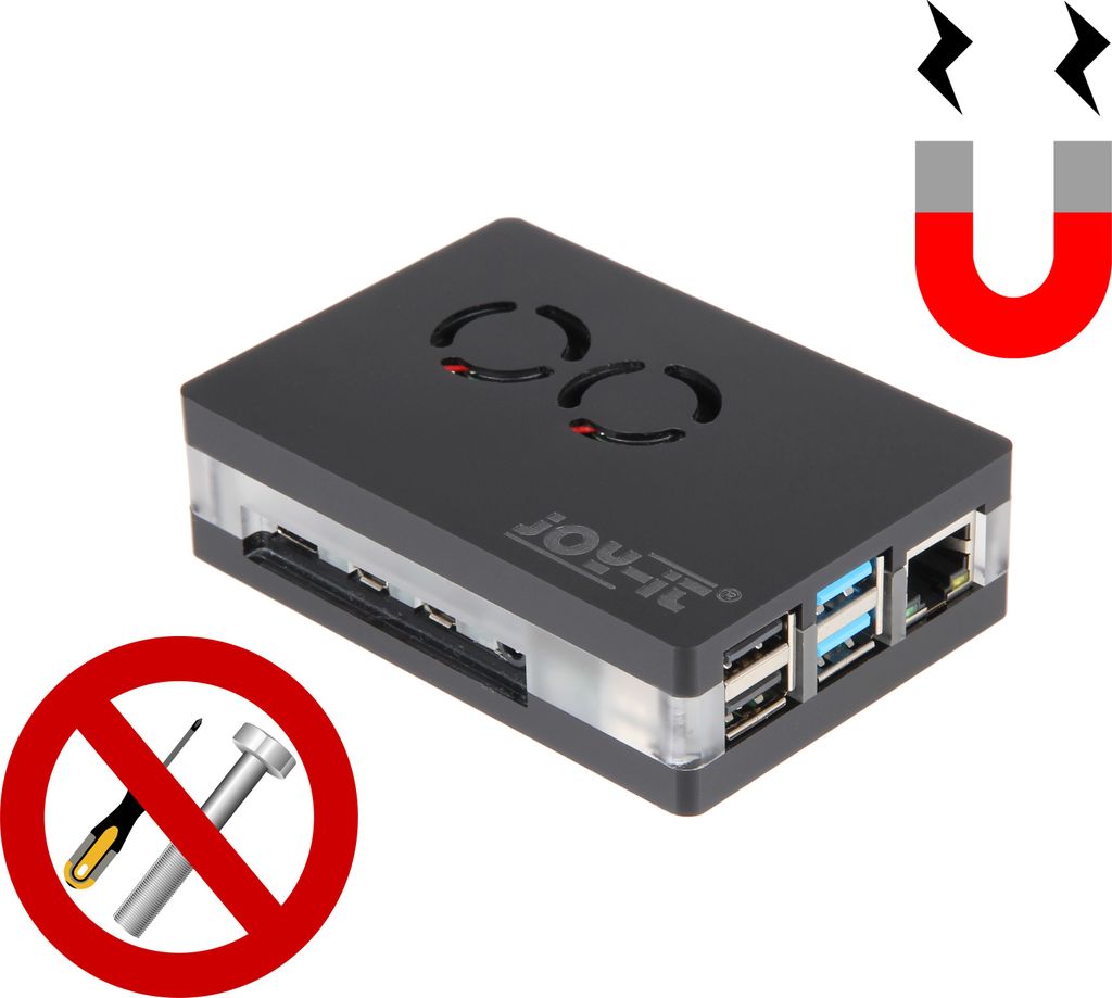 The two integrated fans and the enclosed heat sinks ensure that your Raspberry Pi 4B is always cooled.