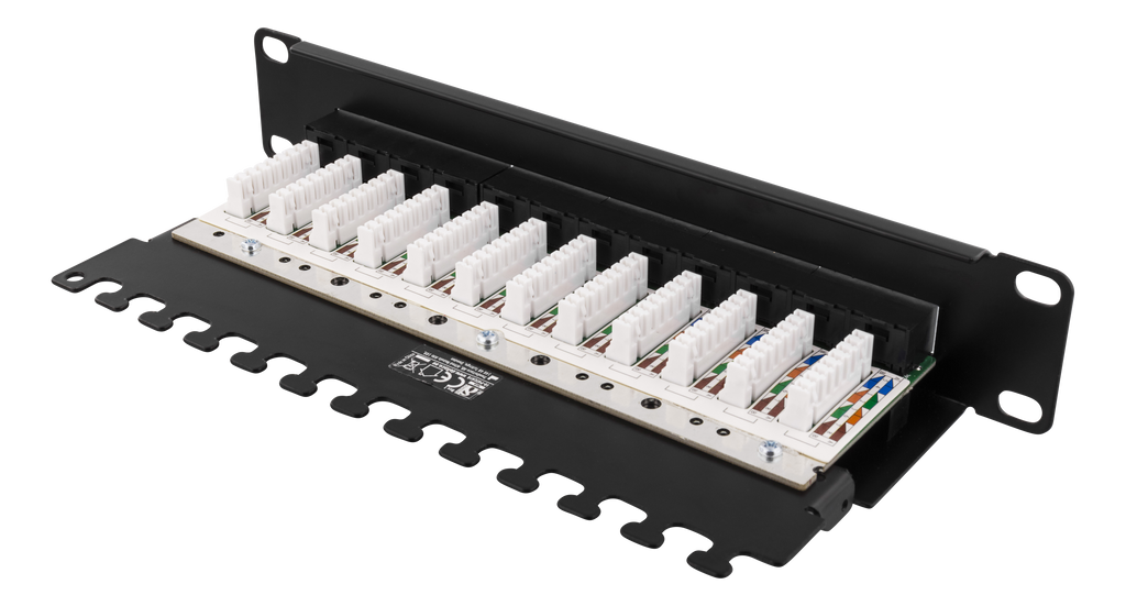 • 12 ports with Cat6 RJ45 and 22-24AWG Krone LSA.