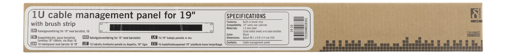 DELTACO 19" cable management with brush, metal/nylon 1U, black