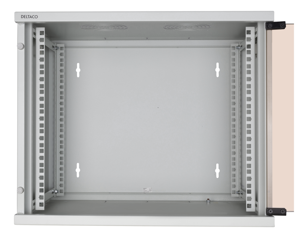 Beskrivning av DELTACO 19" cabinet, 9U, 540x450mm, standing or wall-mounted, glass door, white