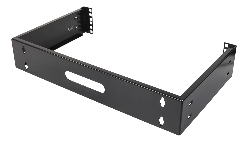 Bracket for mounting switches, patch panels, or other 19" devices on the wall.