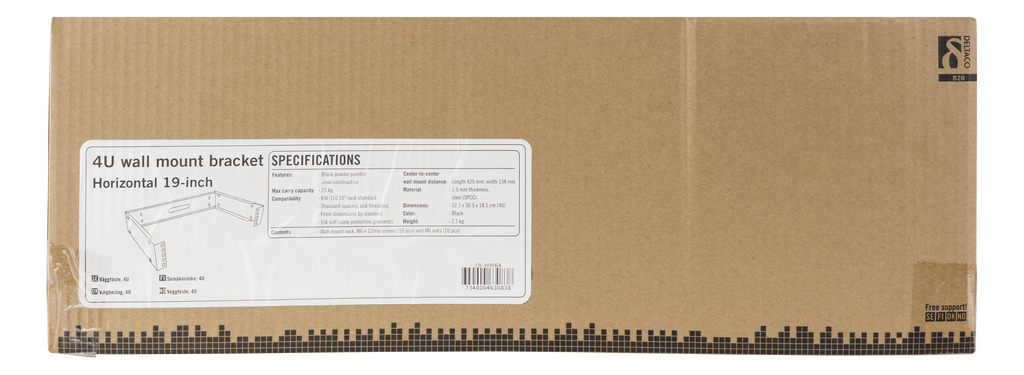 Beskrivning av DELTACO, 19" wall mount, 4U, 520x304mm DELTACO, 19" wall mount, 4U, 520x304mm Wall mount for, for example, switches, patch panels, or other lightweight 19" devices. Dimensions (WxDxH): 520x304x180mm.