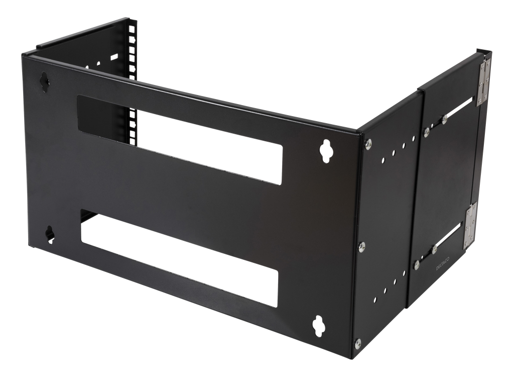 DELTACO 19" wall mount rack with adjustable depth, 6U, 35kg load capacity, steel, mounting kit, black