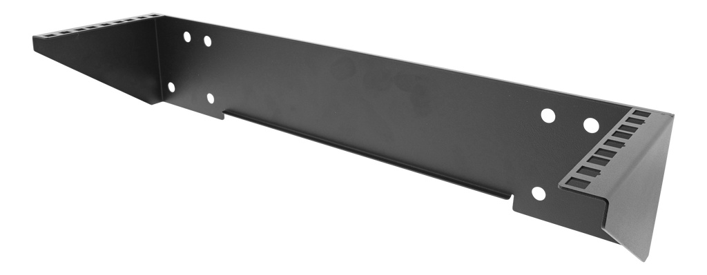 Vertical wall mount with a height of 3U to install switches, patch panels or other 19" devices on the wall. Can also be used under a desk as illustrated in the pictures.