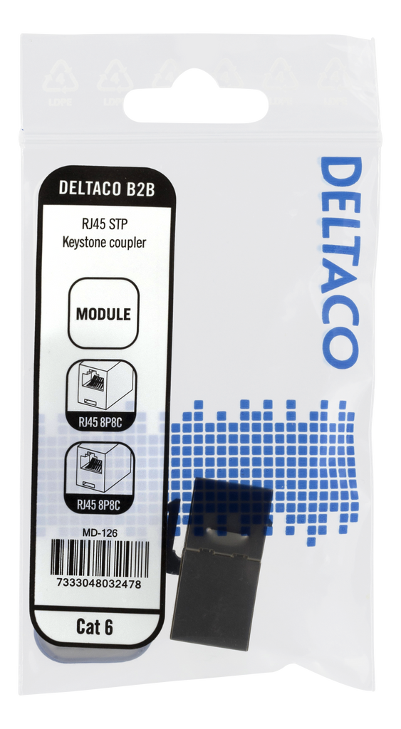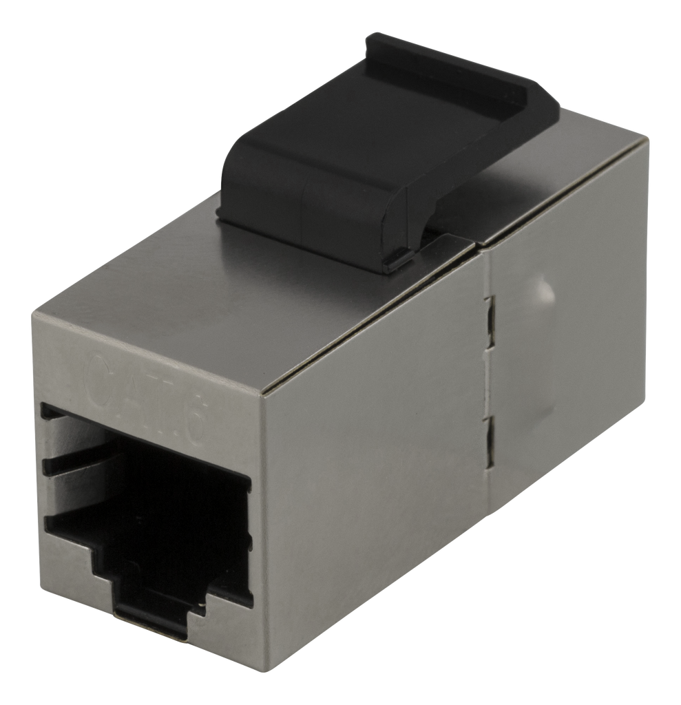 Beskrivning av DELTACO Cat6 Keystone-skarv, skärmat, 2xRJ45, plast, 180, metall