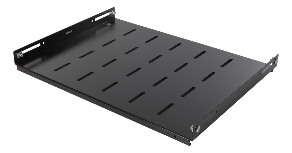 Beskrivning av DELTACO, fast shelf, 350mm depth, for 600x600 cabinets DELTACO, fast shelf, 350mm depth, for 600x600 cabinets with S-profiles. Easily mounts directly on the 19" columns. Maximum load: 50Kg.