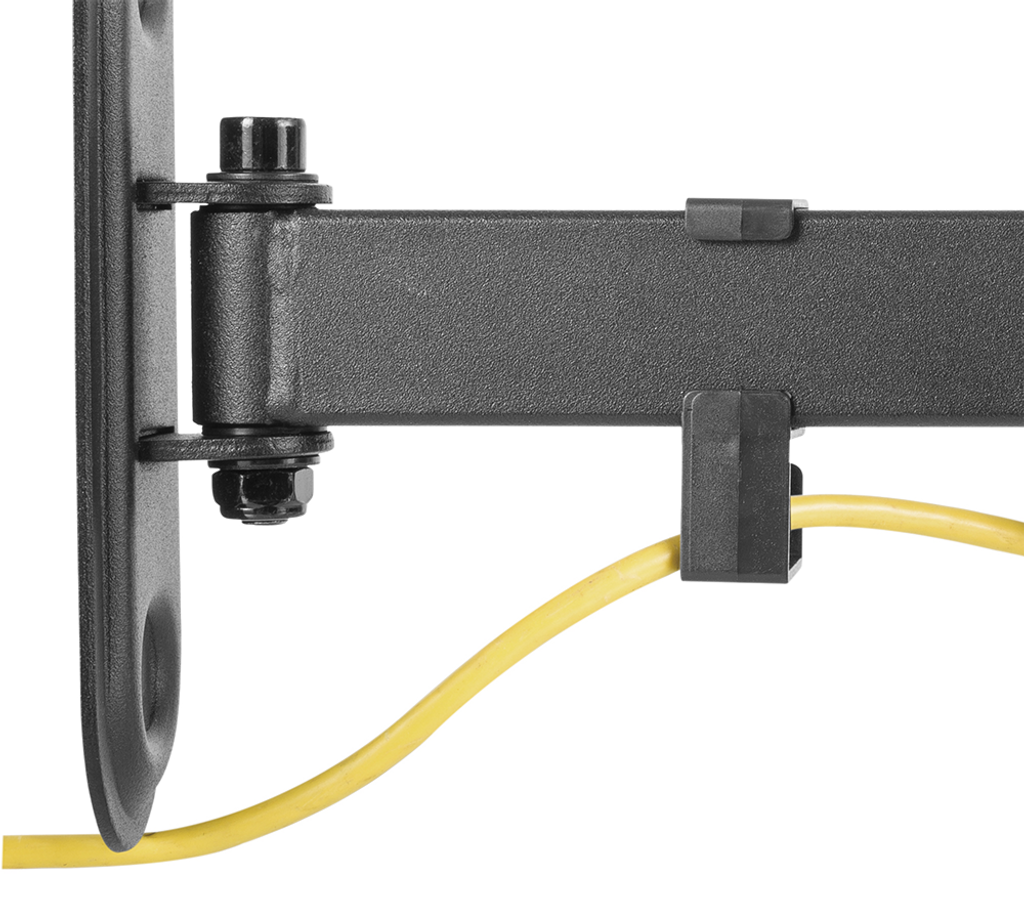 Well-thought-out design enables easy installation. With features like an adjustable swivel arm and a tilt VESA mount that ensures a perfect viewing angle, as well as built-in cable management for organized cables. The wall mount is VESA compatible with dimensions 75x75, 100x100, 200x100, 200x200.