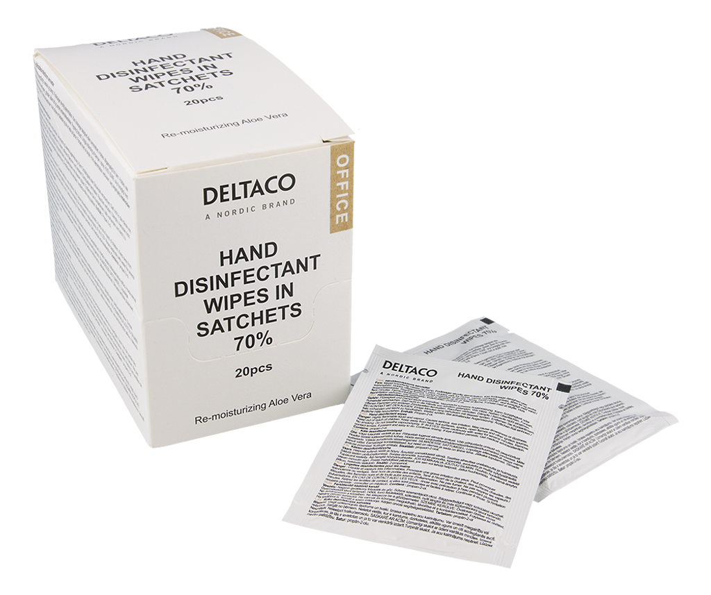 Beskrivning av DELTACO Office Hand disinfectant wipes in sachets, 20 pcs