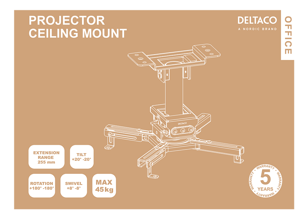 Beskrivning av DELTACO Office Projector Ceiling mount, 225mm, 45kg