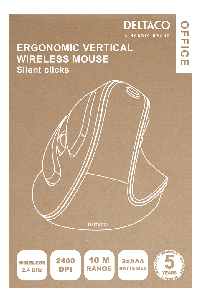 Beskrivning av DELTACO Office Wireless Vertical Ergonomic Mouse, Silent Clicks, 2400
