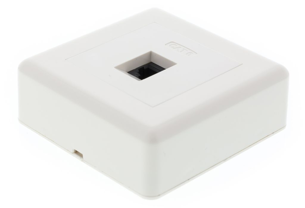 Beskrivning av DELTACO Surface Mount Wall Outlet UTP 1XRJ45, Cat6 DELTACO wall outlet, surface-mounted UTP 1xRJ45, Cat6, white.