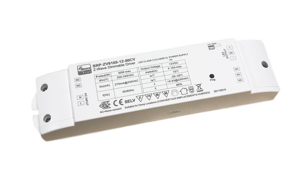 SRP-ZV9105-50W-CV is a 50W Dimmable Constant Voltage LED Driver with 1 channel 12VDC output. It is designed with 200-240VAC input. Power factor of the driver can be over 0.9 and efficiency is higher than 85%. It enables smooth and deep dimming to 0.1% without flickering and buzzing noise.