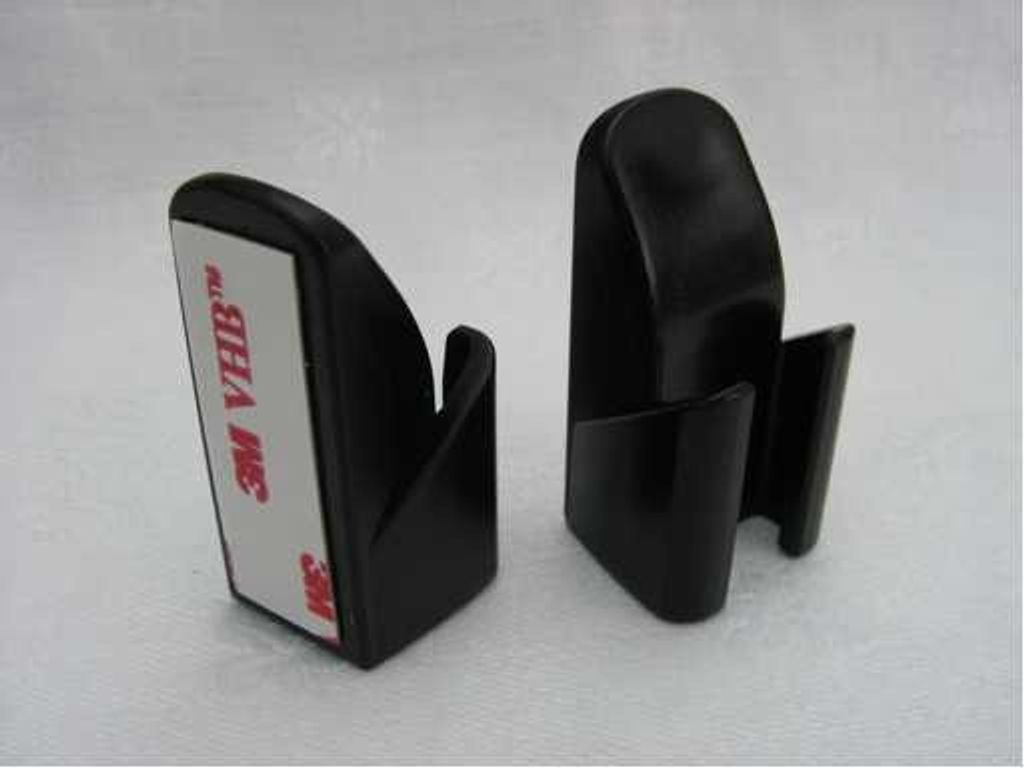 La base de soporte DS1404 proporciona una forma conveniente de guardar las sondas táctiles DS1402. Está hecha de plástico moldeado negro y viene con cinta adhesiva de doble cara para montar.