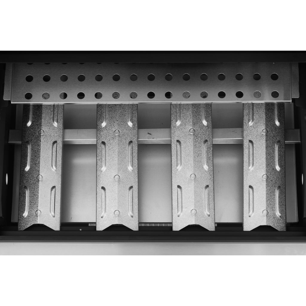 - Stainless steel SS430 accessory basket on the front plate of the grill