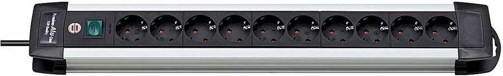 Brennenstuhl Premium Alu-Line, power strip with 10xCEE 7/4 sockets, 1xCEE 7/7 connection, central switch, 3m cable, childproof, aluminum/plastic, black/silver.