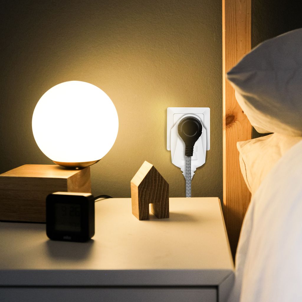 - Thanks to the pass-through plug, the socket will not take up a wall outlet while it is plugged in