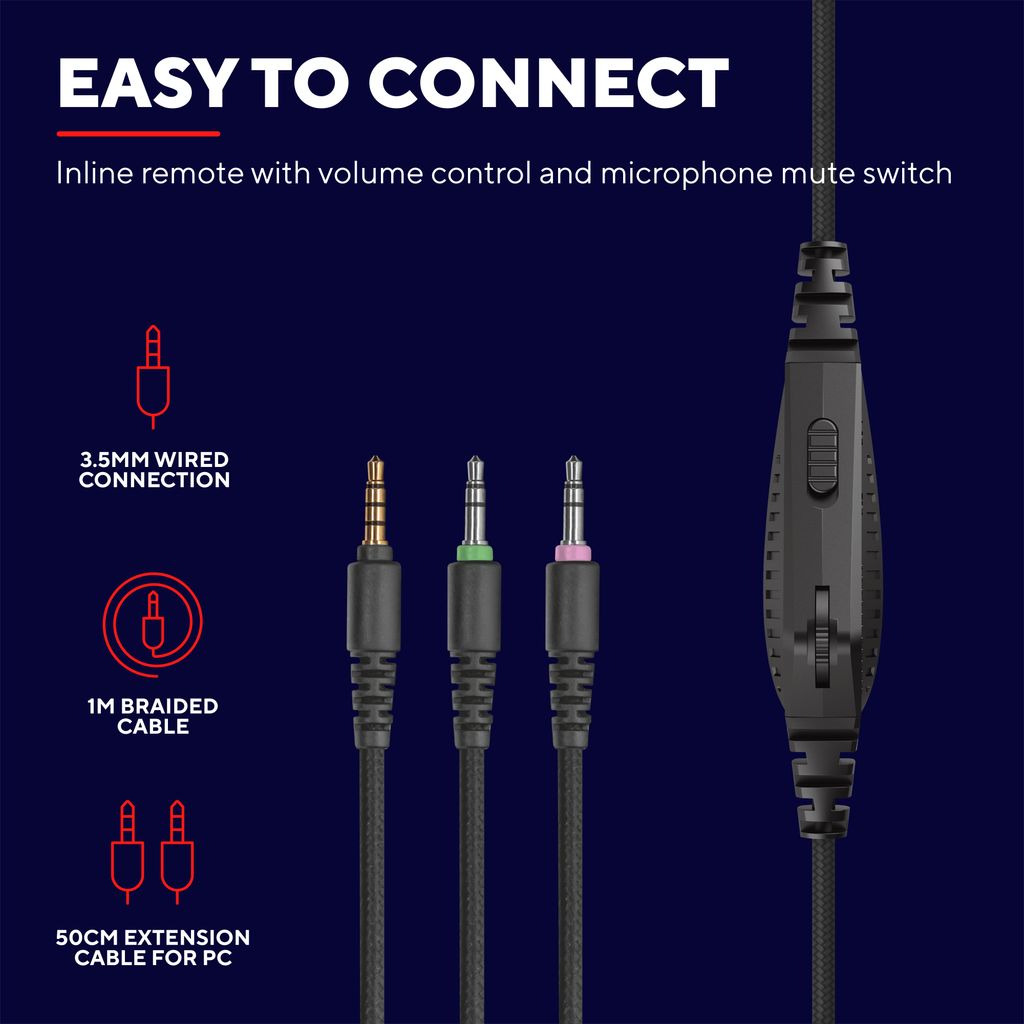 Med sin multiplattformsdesign går det att använda Radius med din favoritkonsol eller dator. Anslut enkelt headsetet till din konsol via 1m-kabeln eller använd 1m förlängningskabeln för en plug-and-play-anslutning med din stationära dator, laptop eller smartphone.