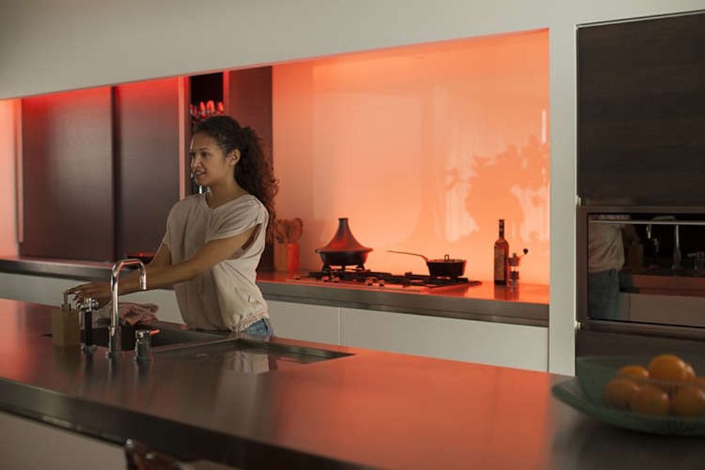 Hue LightStrip Plus är den mest flexibla ljuskälla du kan tänka dig. Den har även en löstagbar strömadapter för enkel installation. Du kan forma remsan i nästan vilken form som helst och använda tejpen på baksidan för att sätta fast den på en stabil yta. Du kan ifall det behövs minska din till valfri storlek på saxmarkeringarna och bara enkelt klippa av den. Integrera LightStripsi möbler som exempelvis under köksskåp. Är en oerhört mångsidig ljuskälla som kommer att bidra med nytt ljus åt ditt rum.