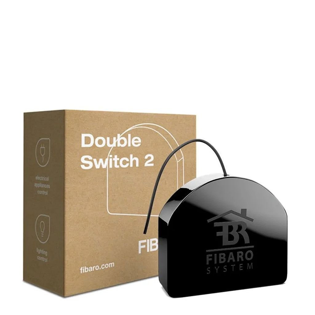 Fibaro's dual switch can be controlled via existing wall switches or through a Z-wave system (app, controller, scheduling, or sensors).
