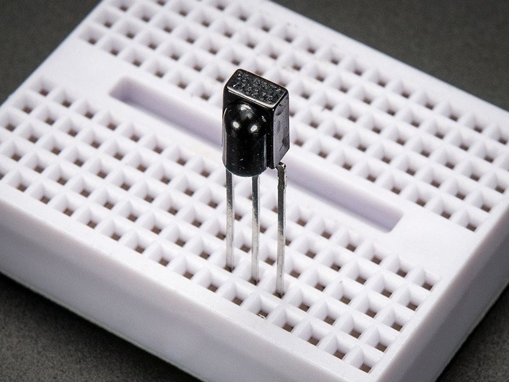 IR sensor tuned to 38KHz, perfect for receiving commands from a TV remote control. Runs at 3V to 5V so it's great for any microcontroller.