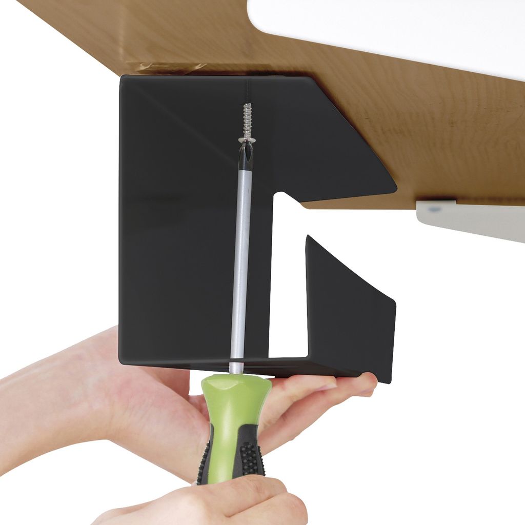 - Mounted under the desk