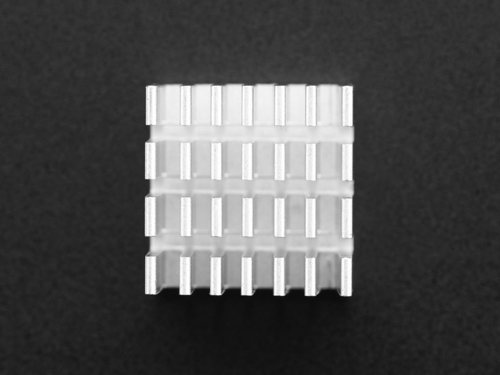 This heat sink is made from high quality aluminum and will work perfectly with any Raspberry Pi but is best paired with a Raspberry Pi 3 since it can run a little hot. It comes with thermal adhesive already applied to the back making installation super easy. Clean the surface of the chip of any dust or grease then peel off the protective film and press the heat sink firmly onto the chip. You can use this heat sink with any of the injection molded Adafruit Pi Enclosures, but it may not work with other enclosures and most HATs will not fit on top with the heat sink installed.
