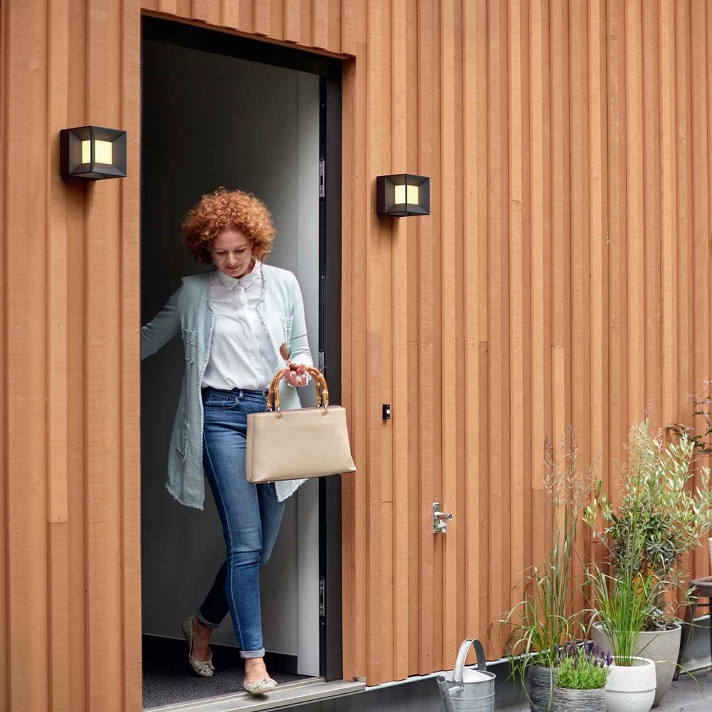 The black LED wall lamp Philips Parterre for outdoor use has a light cube in a holder made of durable cast aluminum. The smart design catches the eye and casts beams of warm white light in all directions on the wall.