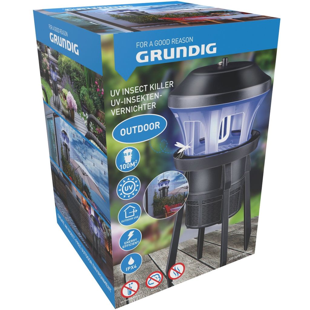 Grundig's new insect and mosquito trap is designed for outdoor use and covers an area of approximately 100 square meters.