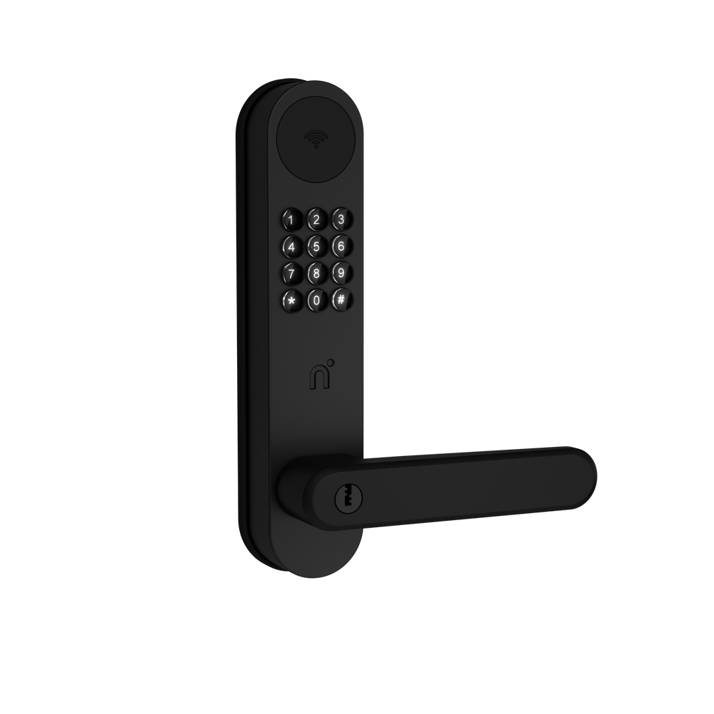 Nimly Code - Smart lås med fysiska knappar för kodfunktion och RFID-läsare för nyckelbricka.Lås upp ytterdörren med kod, nyckelbricka eller nödnyckel. Förberett för öppning via app i telefon