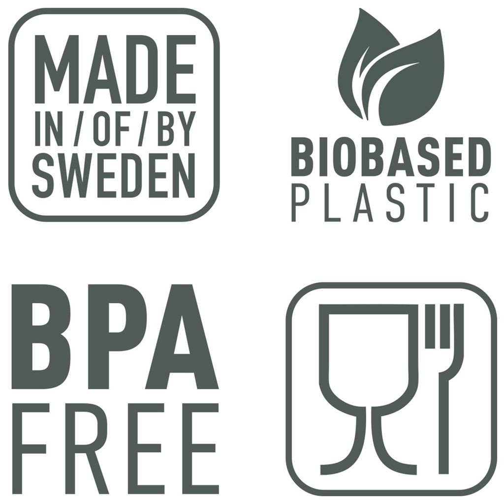 All other parts are made of bioplastic based on certified sugar cane and wood fiber (except for the rubber strap that holds the kit together).