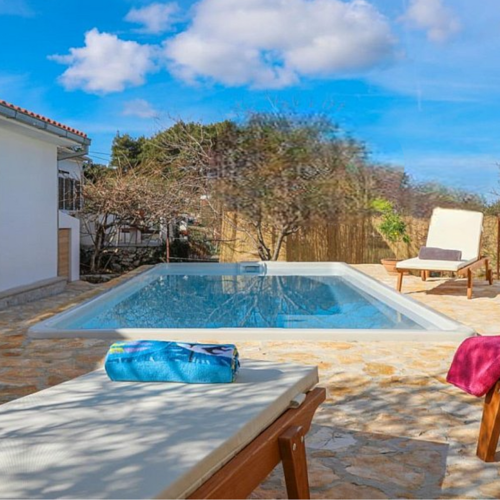 Den integrerade trappan har halkskydd och poolen har generösa sittplatser.