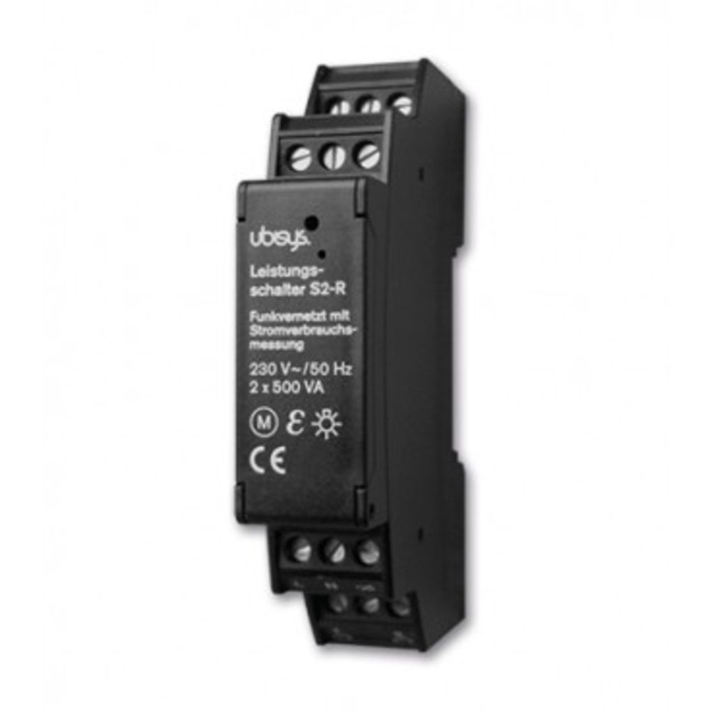 This component has two connections for end devices (output, load) and two connections for operating elements (switch or push-button). Push-buttons can also be set up to regulate a group of lamps or even activate scenarios.- Invisible: The power switch S2-R is to be installed in the control box of the sub-distribution on a DIN rail. The standardized design allows the replacement of an existing rail mount device (e.g. a relais) by the smart power switch S2-R. A flush-mount version for the installation behind a light switch or a wall or ceiling outlet is also available.