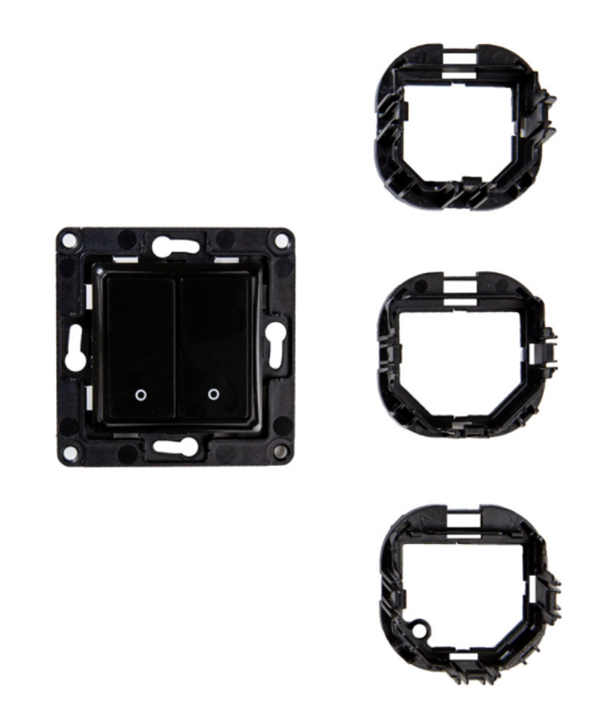 Knapparna är helt platta på baksidan och levereras med en hållare som enkelt klickas på baksidan för att fästa Shelly reläer och dimmers, vilket gör knapparna intelligenta.