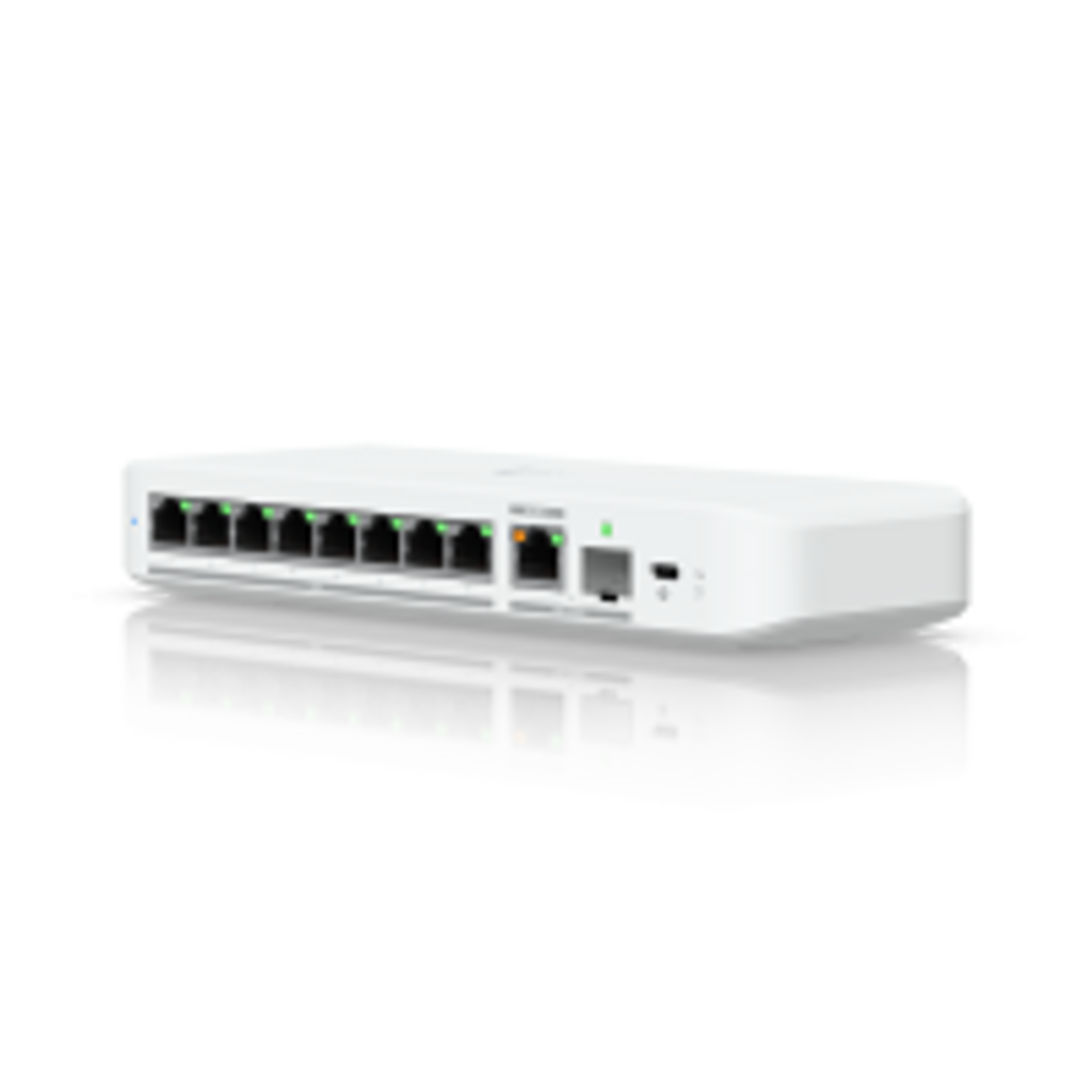 Ubiquiti USW-FLEX-2.5G-8 är en kompakt 8-ports switch med 2.5 Gbps-hastighet och en 10 Gbps RJ45/SFP+ kombinerad uplink-port. Den har en total switchkapacitet på 60 Gbps och kan strömförsörjas via PoE eller en valfri USB-C-adapter.