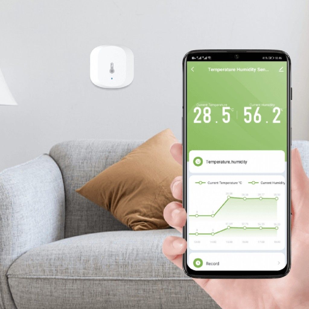 Håll koll på din omgivning med WOOX Zigbee Smart Humidity & Temperature Sensor R7048. Denna smarta sensor mäter både temperatur och luftfuktighet i realtid och ger dig exakta avläsningar direkt i din smartphone.