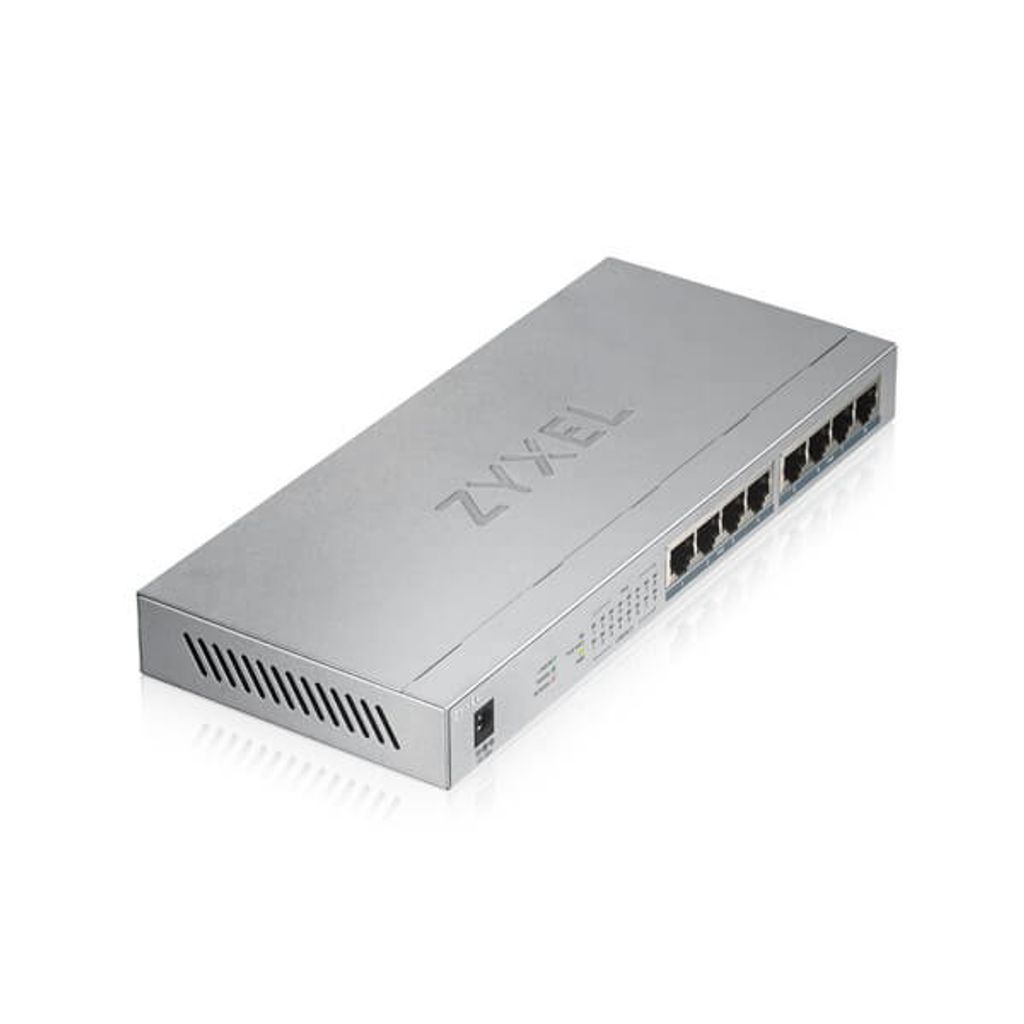 Zyxel GS1008HP-EU0101F är en omanagerad Gigabit-switch utrustad med åtta PoE+-portar enligt IEEE 802.3af/at-standard. Varje port kan leverera upp till 30 W, med en sammanlagd PoE-budget på 60 W, vilket gör den idealisk för att driva enheter som WiFi-accesspunkter, IP-kameror och VoIP-telefoner.