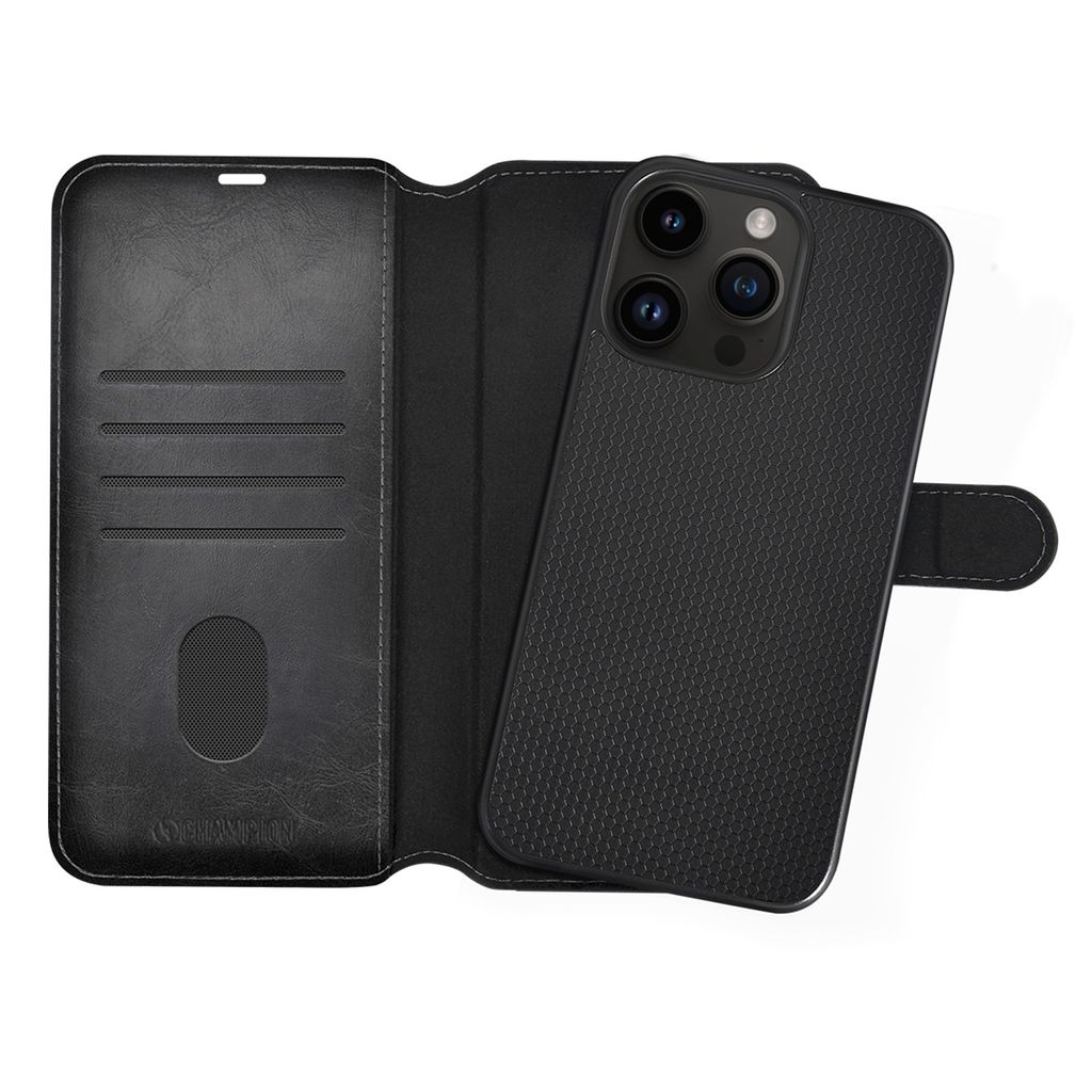 Champion 2-in-1 Slim Wallet Case skyddar din mobil mot tappskador och repor samtidigt som den fungerar som plånbok. Du får plats med fyra betalkort i kortfacken, kontanter i sedelfickan samtidigt som locket sitter säkert på plats med hjälp av ett magnetlås. Det avtagbara mobilskalet inuti plånboksfodralet är utrustad med magnetfäste och kan med fördel användas till bilhållare med magnet. Skalet är också försedd med en snygg gummerad antiglid-yta vilket är praktiskt om man vill använda skalet utan plånboksfodralet. Det avtagbara mobilskalet stödjer även trådlös laddning.