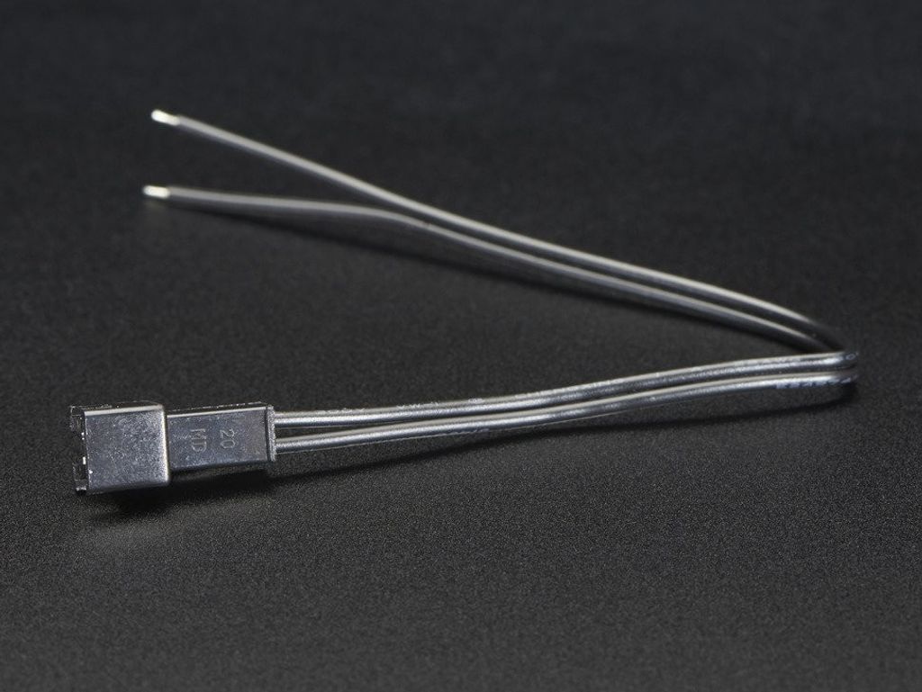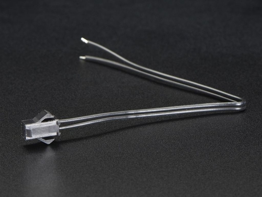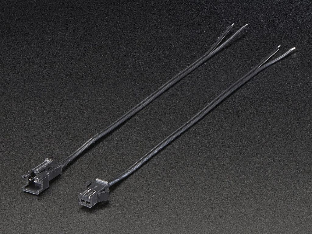 These 2-wire cables are 16cm long and come as a set. One side has a 2-pin JST SM type connector plug on the end. The other side has a matching 2-pin JST SM type receptacle connector. They are good for whenever you have 2 wires you want to be able to plug and unplug. We like the solid and compact nature of these connectors and the latch that keeps the cable from coming apart easily.