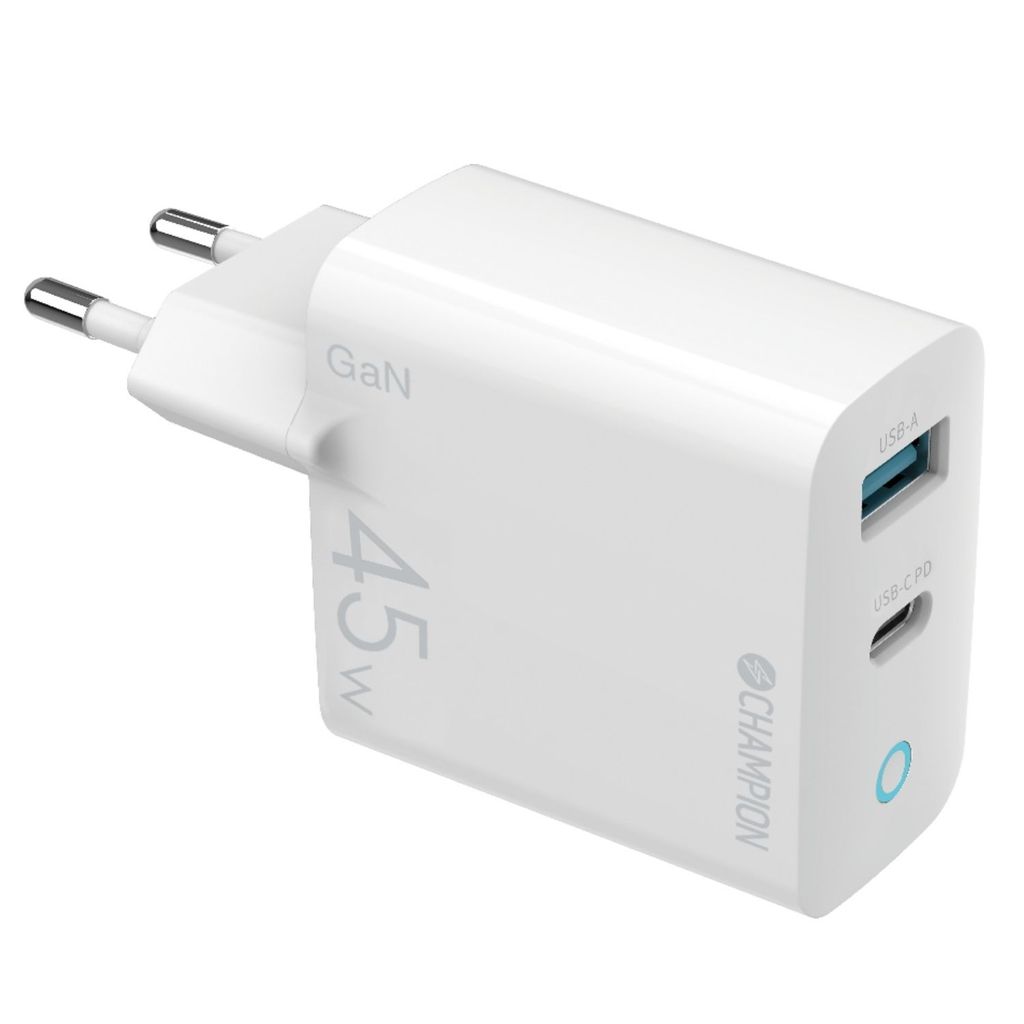 Champions 45W väggladdare är en riktigt kraftfull USB-laddare som du kan använda både till mobiltelefonen, surfplattan och laptopen. Denna väggladdare har både USB-C och USB-A-uttag. Laddaren har trots sin kompakta storlek, en total output på 45 W och du kan räkna med garanterad prestanda. Laddaren är även certifierat säker och både uppfyller och överträffar alla säkerhetsstandarder. Laddaren har stöd för Power Delivery 3.0, Quick Charge 3.0 samt PPS.