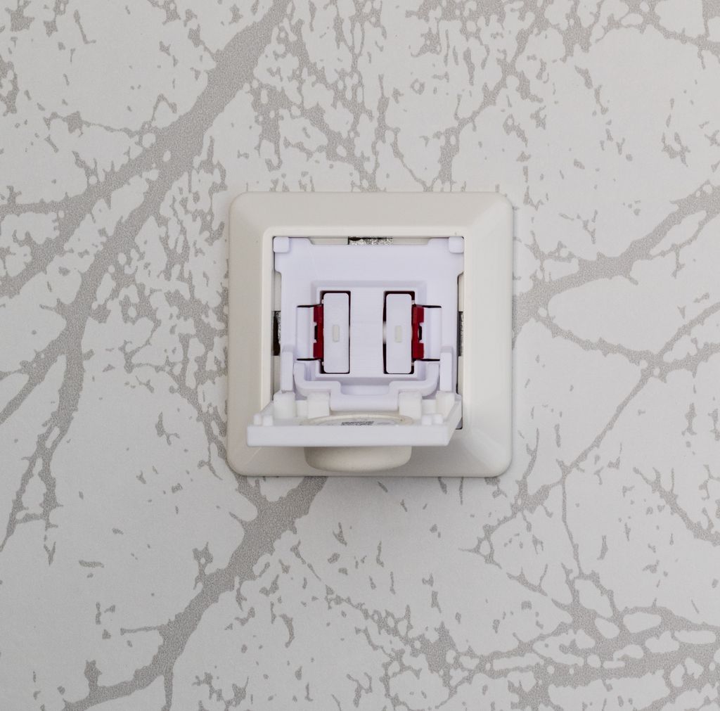 Locket kan öppnas vilket gör att man fortfarande kommer åt den befintliga strömbrytaren.