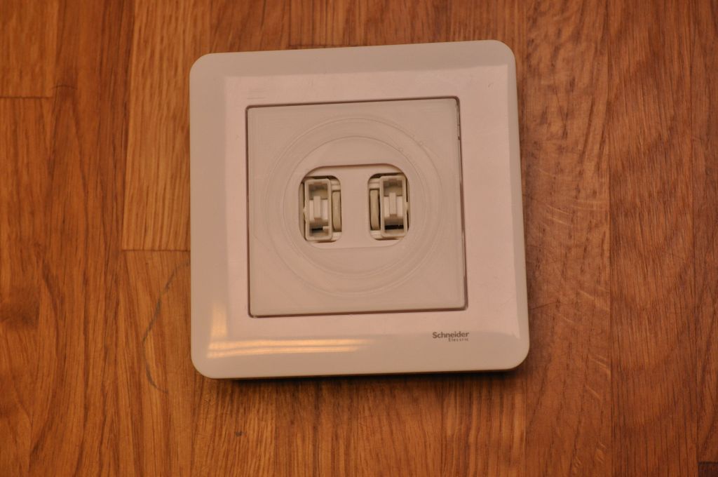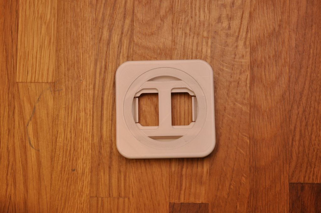 Täcklock med plats för en Xiaomi Mijia On/Off knapp som sätts i en befintlig ram till strömbrytare.