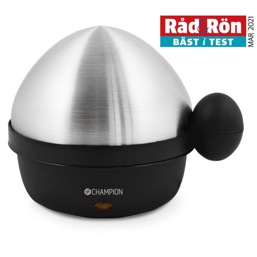 Champions äggkokare kokar perfekta ägg till frukosten utan att du behöver tänka på tiden. Oavsett om du önskar dina ägg löskokta eller hårdkokta regleras det enkelt genom mängden vatten som tillsätts. När signalen ljuder är äggen redo att avnjutas. Äggpickaren finner du på själva ägghållaren.