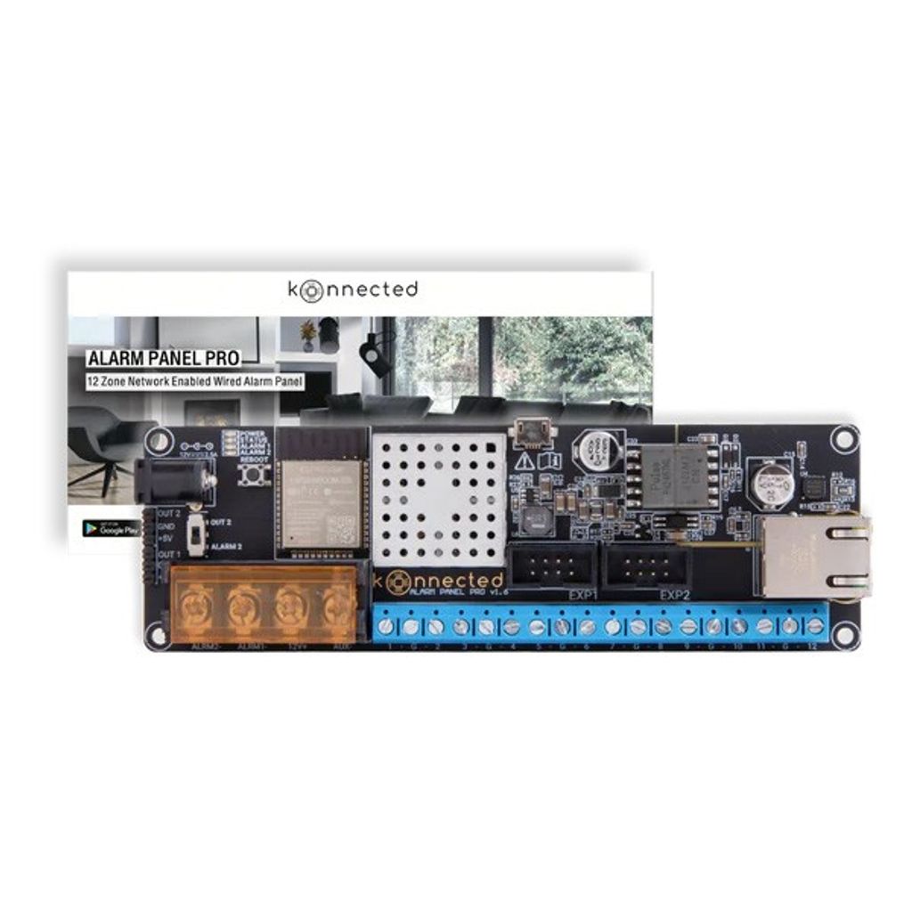 Pro Conversion Kit med 12 zoner per panel, Ethernet- eller Wi-Fi-anslutning, två utgångar för sirener eller strobljus och tillagd Power over Ethernet (PoE) är en perfekt ersättning för alla traditionella trådbundna larmsystem och en bra hemlösning för nya för-kablade hem.