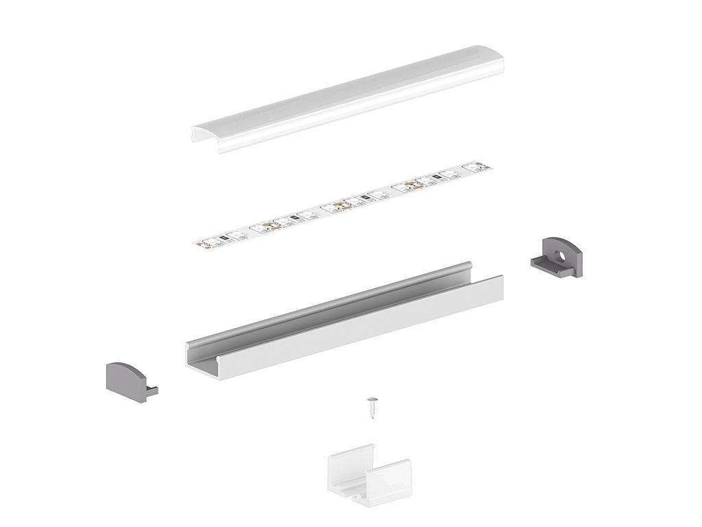 Köp till opalvit eller semitransparent front samt ändlock, fästklamrar i plast eller metall och skarvdelar.