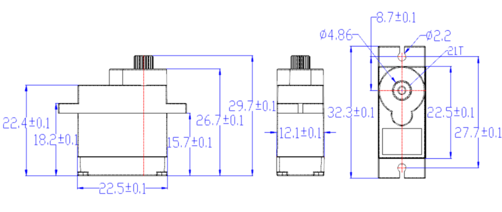 Torque: 1.3(4.8V)/1.5(6V) kg.cm