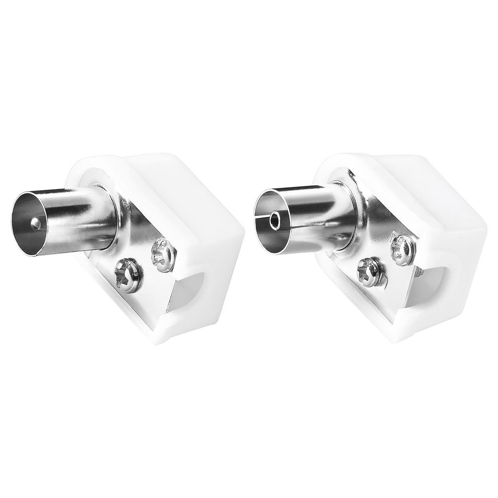 Standard antennkontakt i vinklat utförande som passar utmärkt vid exempelvis trånga utrymmen. Förpackningen innehåller 2 kontakter, 1 hane och 1 hona.