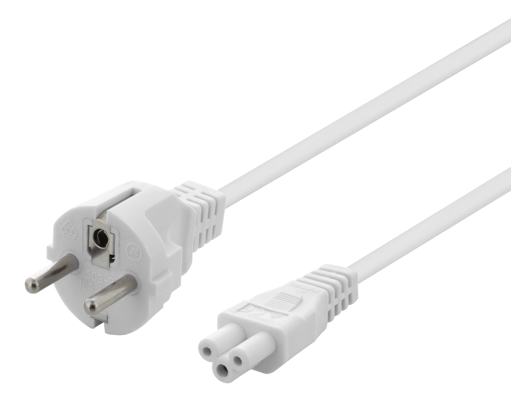 DELTACO jordad apparatkabel, rak CEE 7/7 - rak IEC C5, 3m, 3X 1,0mm2, vit