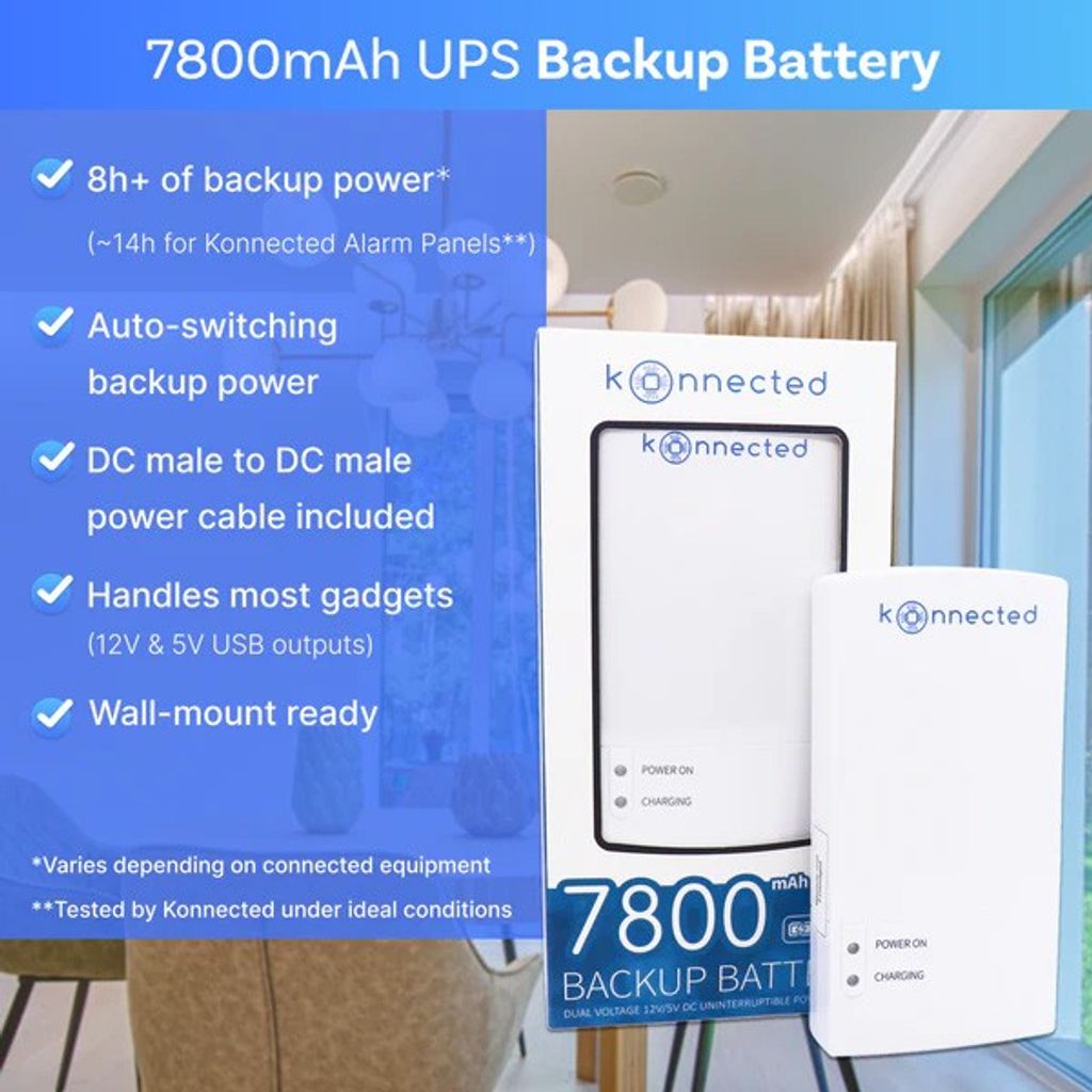 Denna 7800mAh Li-ion-batteri kan driva hela ditt Konnected-system i upp till 14 timmar.