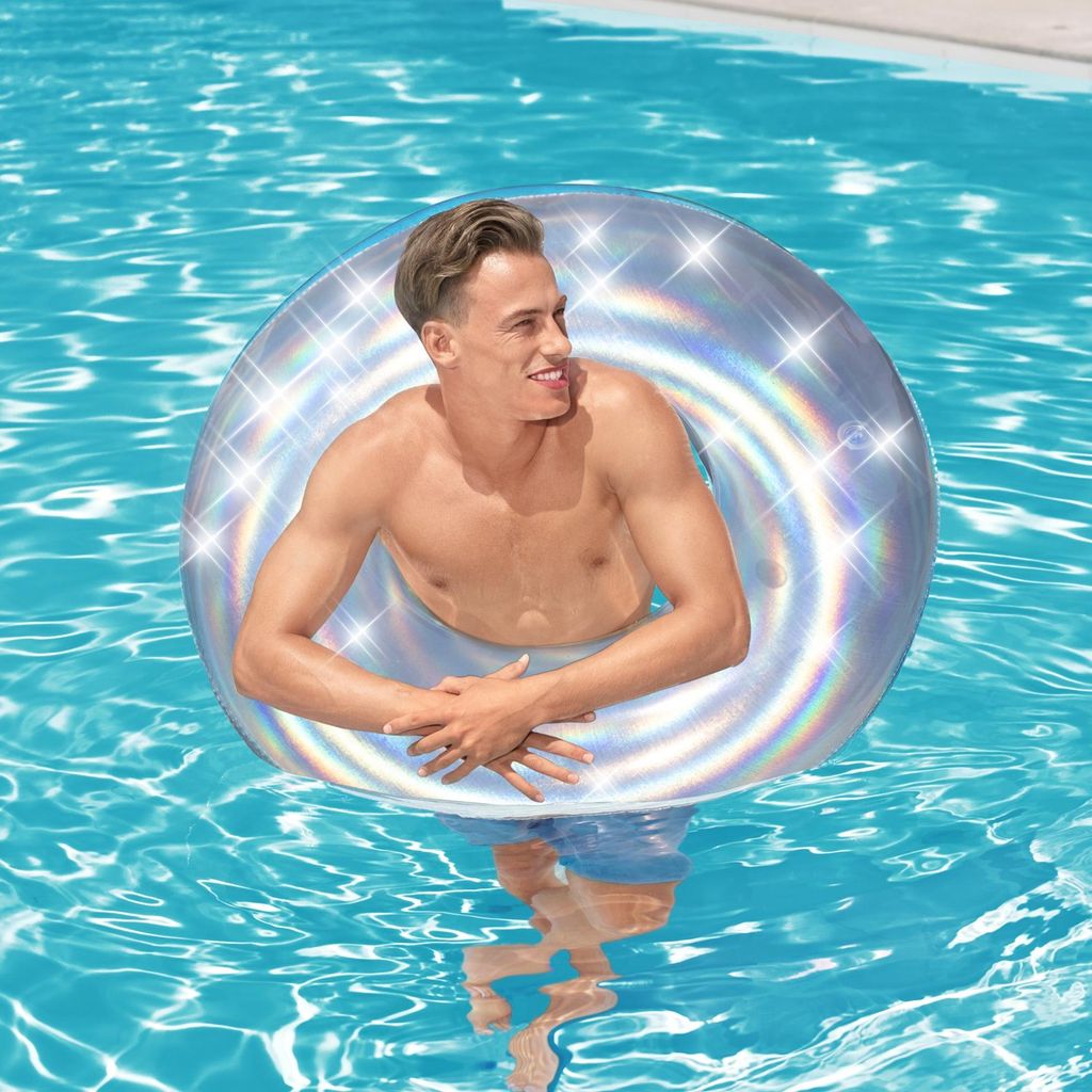 Var du än befinner dig så lär denna regnbågskimrande badring från Bestway få dig att synas!
