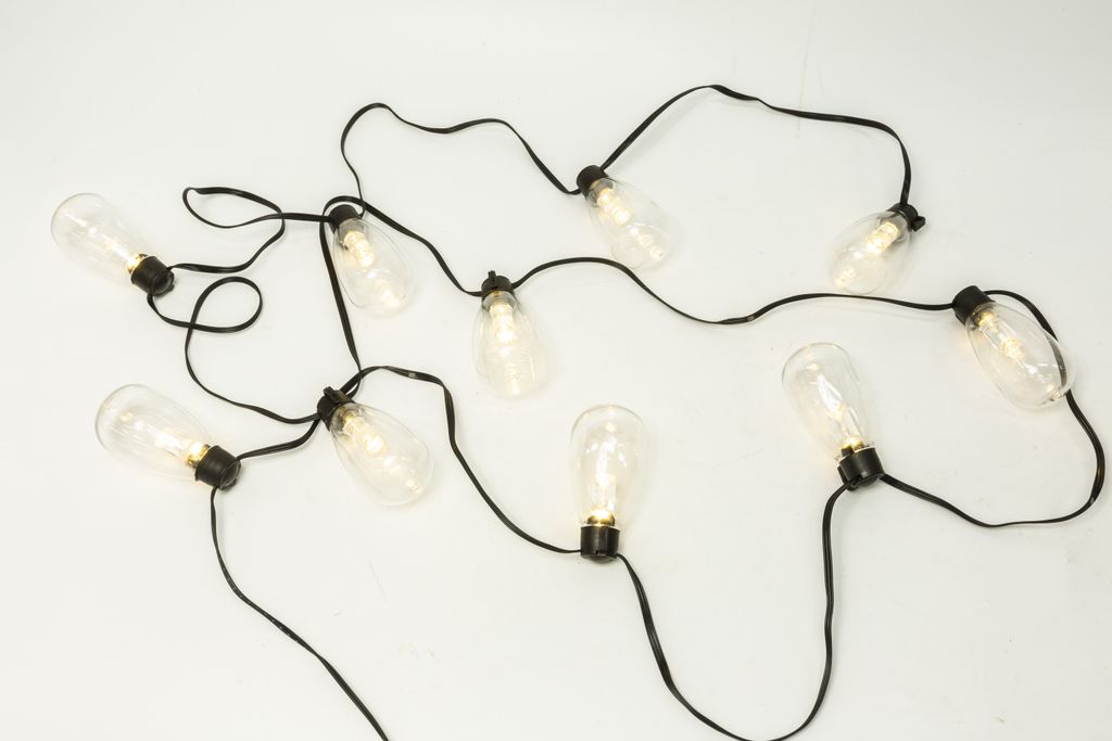 Skapa en stämningsfull atmosfär med denna batteridrivna ljusslinga, perfekt för både inomhus- och utomhusbruk. Ljusslingan är utrustad med 10 hållbara plastlampor, var och en innehållande TTL 28 SMD LED som ger ett klart och energieffektivt ljus. Den platta kabeldesignen gör installationen enkel och diskret, vilket gör ljusslingan idealisk för att smidigt integreras i din dekoration. Med IP44-klassning är den skyddad mot väder och vind, vilket gör den säker att använda utomhus. Den praktiska timerfunktionen låter dig automatiskt styra när slingan tänds och släcks för optimal bekvämlighet. Produkten drivs av 3 AA-batterier (medföljer ej), vilket ger flexibilitet i placering utan att behöva tänka på eluttag.
